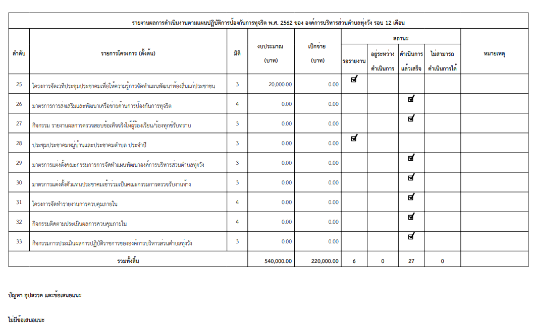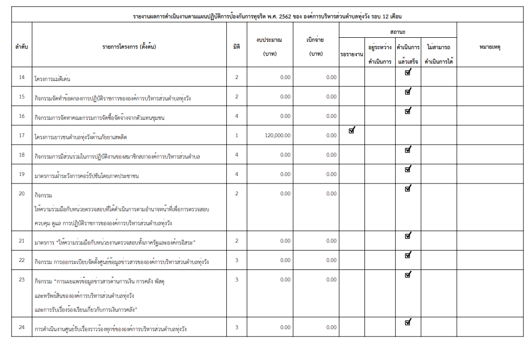 รายงานผลการดำเนินงานตามแผนปฏิบัติการป้องกันการทุจริต 2562 รอบ 12 เดือน