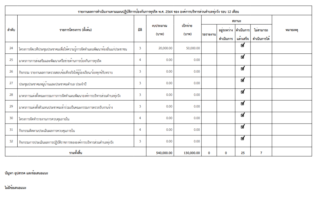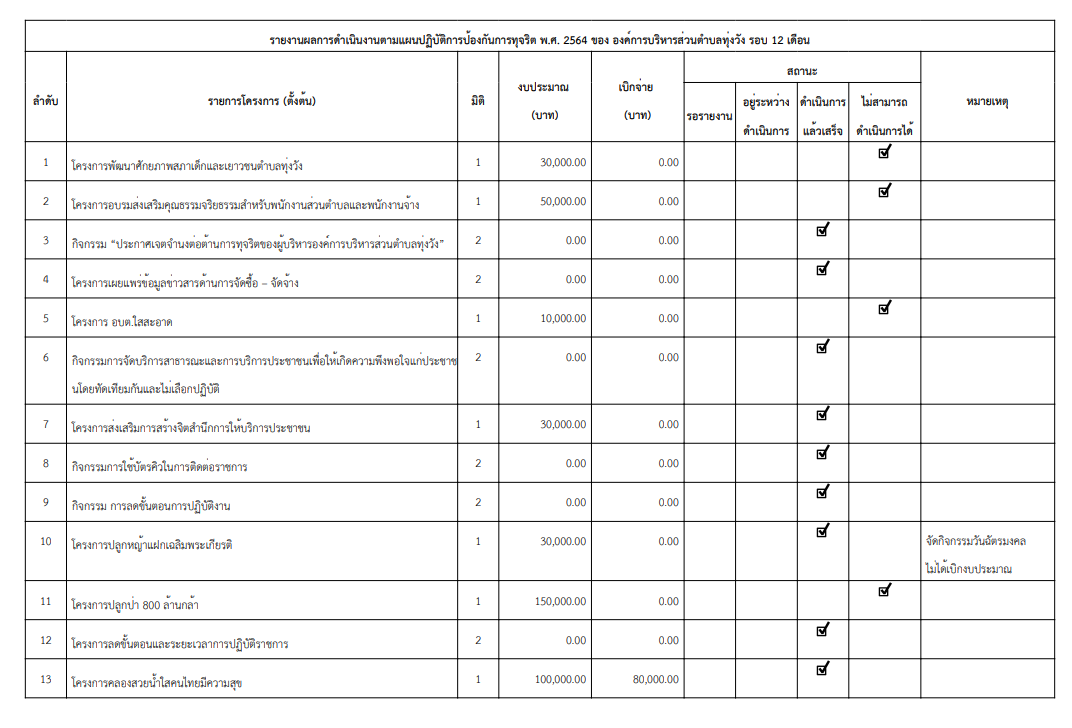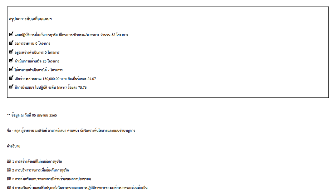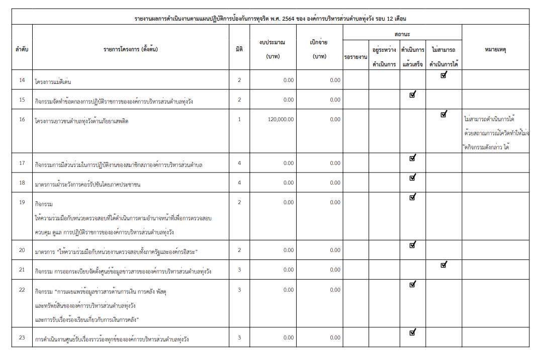 รายงานผลการดำเนินงานตามแผนปฏิบัติการป้องกันการทุจริต 2564 รอบ 12 เดือน