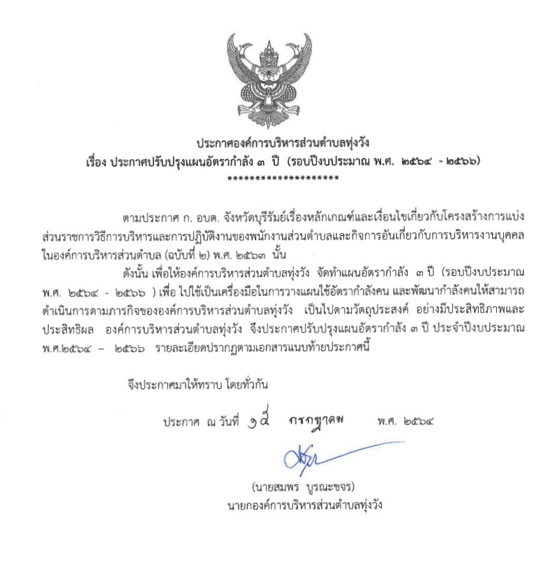 ประกาศ ปรับปรุงแผนอัตรากำลัง 3 ปี (รอบปีงบประมาณ 2564-2566)