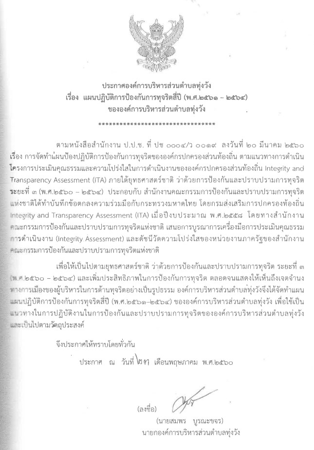 แผนปฏิบัติการป้องกันการทุจริตสี่ปี่(พ.ศ.2561-2564)
