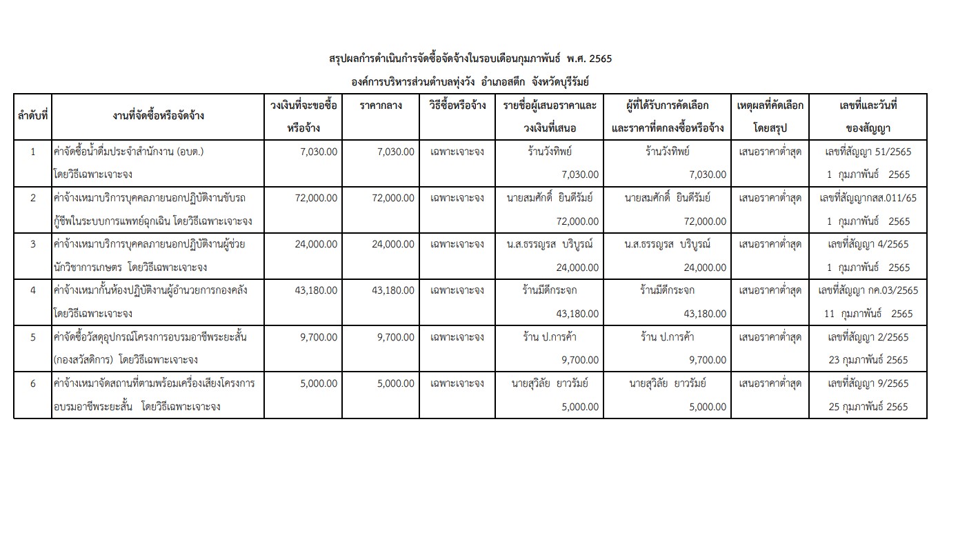 สรุปผลกำรดำเนินกำรจัดซื้อจัดจ้างในรอบเดือนกุมภาพันธ์ พ.ศ. 2565