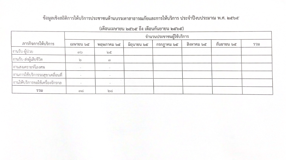 ข้อมูลเชิงสถิติการให้บริการประชาชนด้านบรรเทาสาธาณถัยและการให้บริการประจำปี เดือนเมษายน-กันยายน 2565