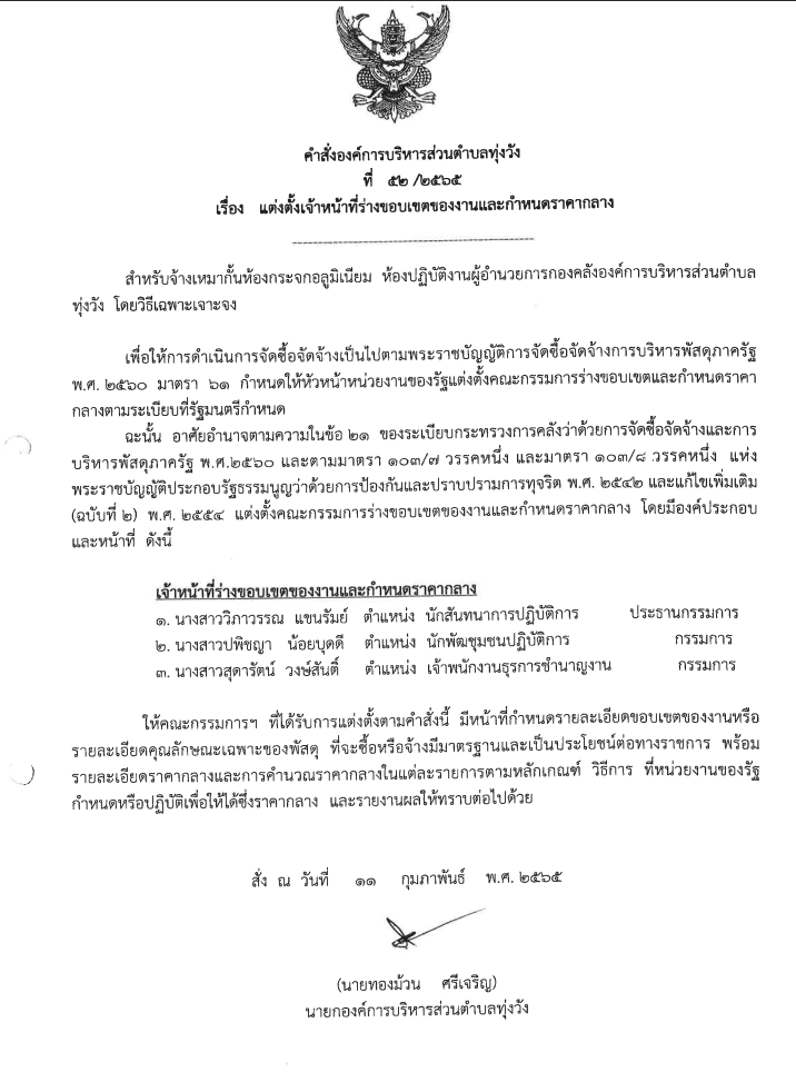 แต่งตั้งเจ้าหน้าที่ร่างขอบเขตงานและกำหนดราคากลาง