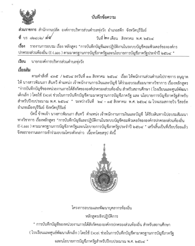 รายงานการอบรม เรื่อง หลักสูตร การบันทึกบัญชีและปฏิบัติงานในระบบบัญชีคอมพิวเตอร์