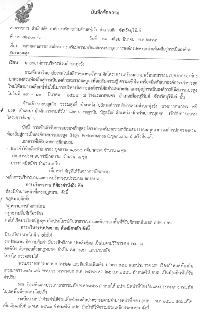 ขอรายงานการอบรมโครงการเตรียมความพร้อมสมรรถนะบุคลากรองค์กรปกครองส่วนท้องถิ่นสู่การเป็นองค์กรสมรถนะสูง