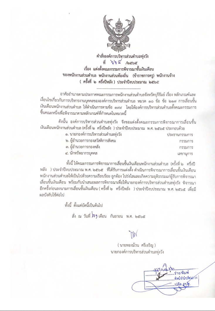 แต่งตั้งคณะกรรมการการพิจารณาขั้นเงินเดือนของพนักงานส่วนตำบล ข้าราชการครู ครั้งที่ 2