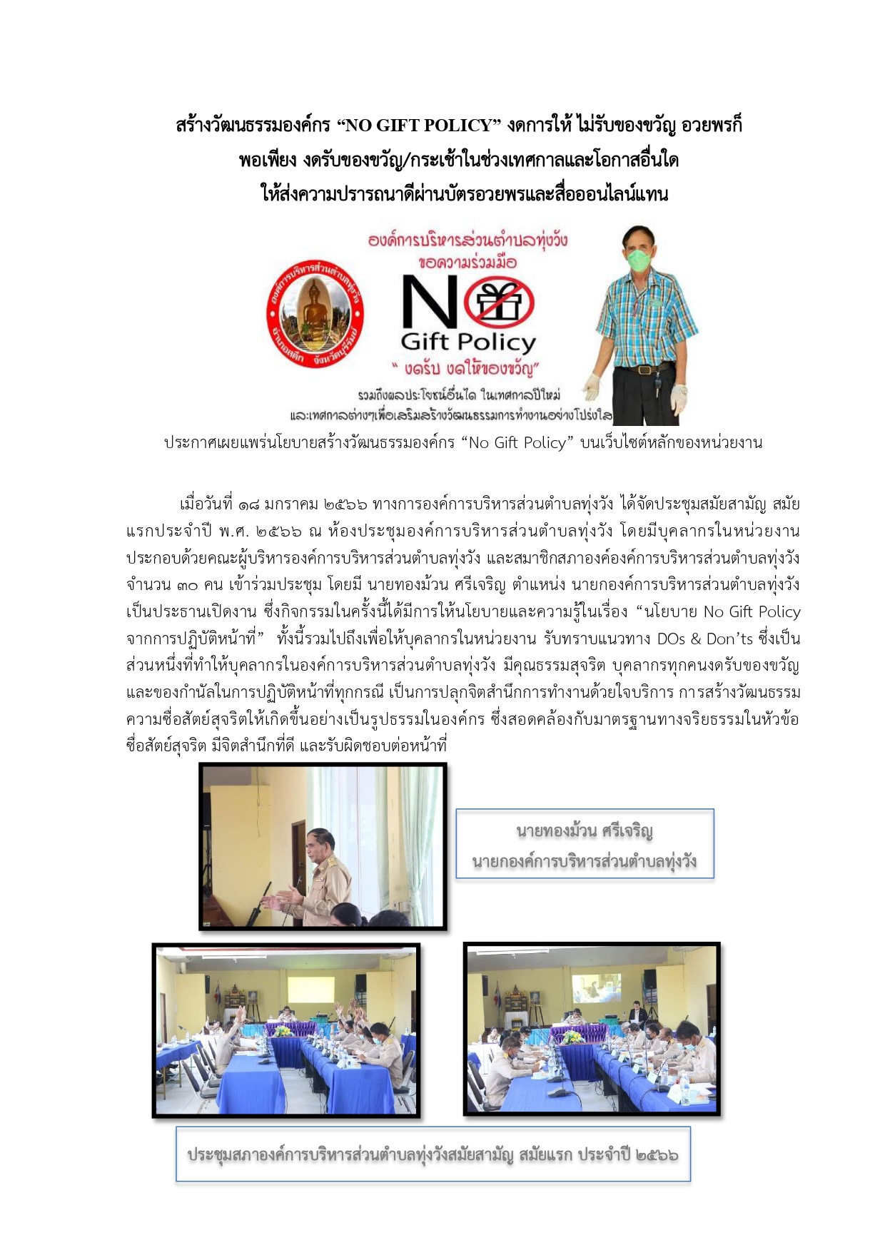 ประกาศเจตนารมณ์ นโยบายการไม่รับของขวัญและของกำนัลทุกชนิดจากการปฏิบัติหน้าที่(NO Gift PolicY) พ.ศ.2569