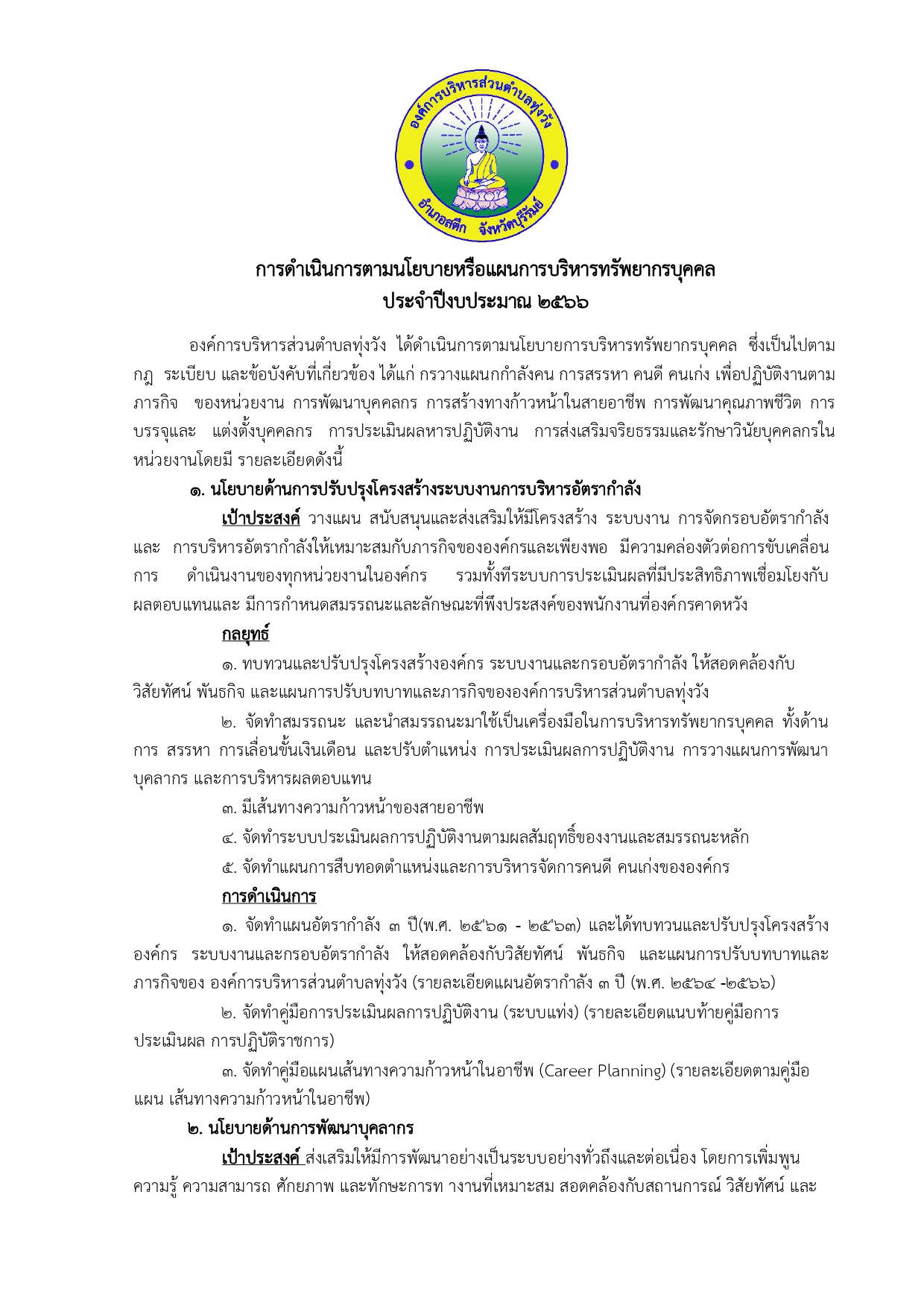 การดำเนินการตามนโยบายการบริหารทรัพยากรบุคคล รอบ 6 เดือน (1 ตุลาคม 65 - 31 มีนาคม 66)