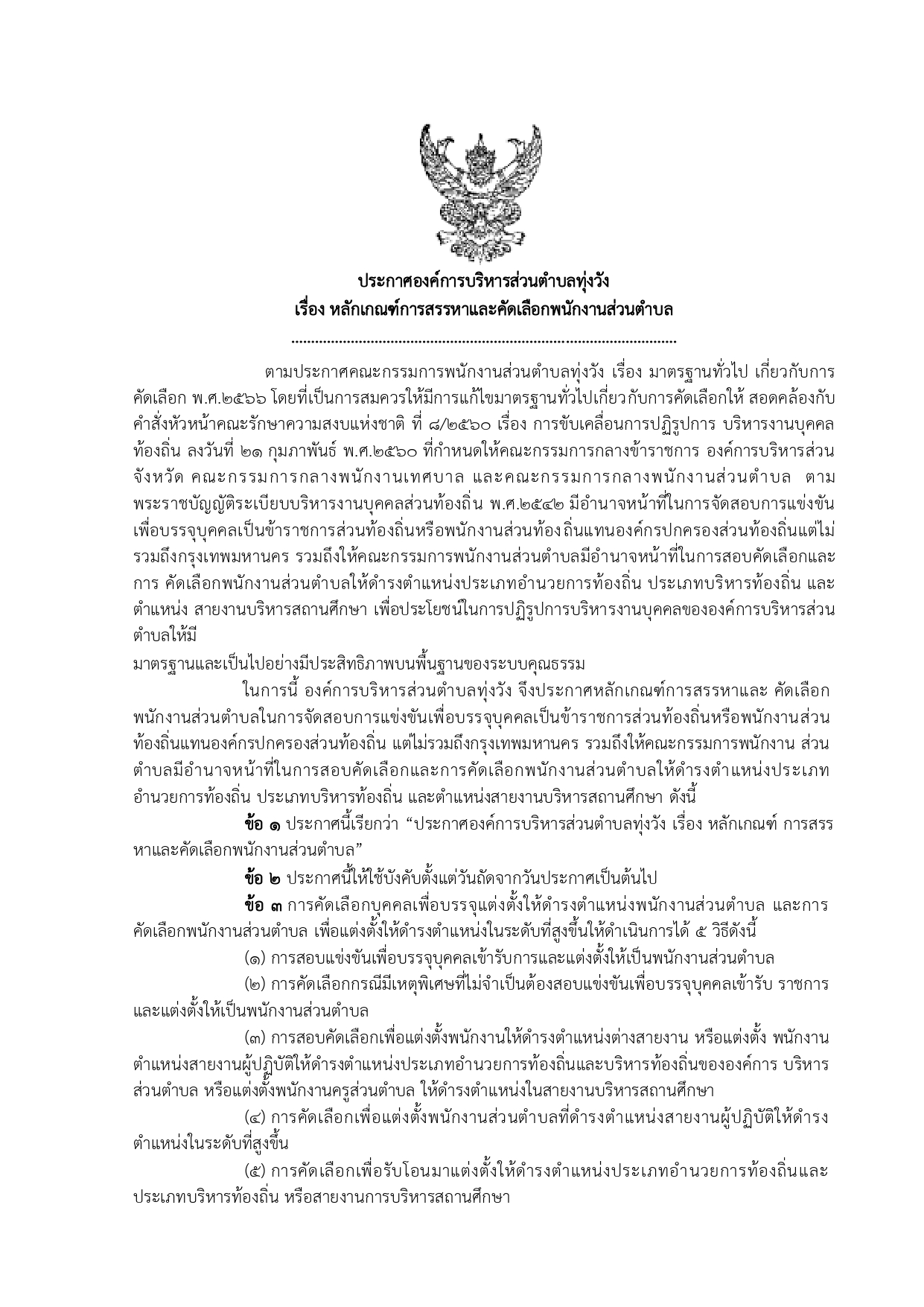 หลักเกณฑ์การสรรหาและคัดเลือกพนักงานส่วนตำบล ประจำปี 2566