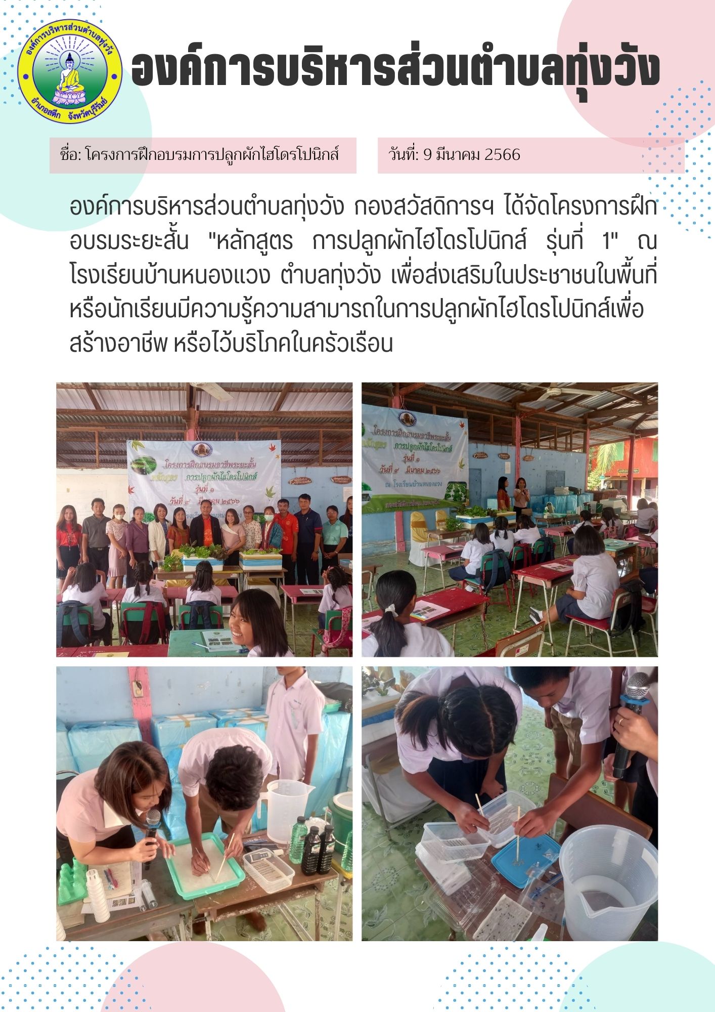 โครงการฝึกอบรมการปลูกผักไฮโดรโปนิกส์ โรงเรียนบ้านหนองแวง
