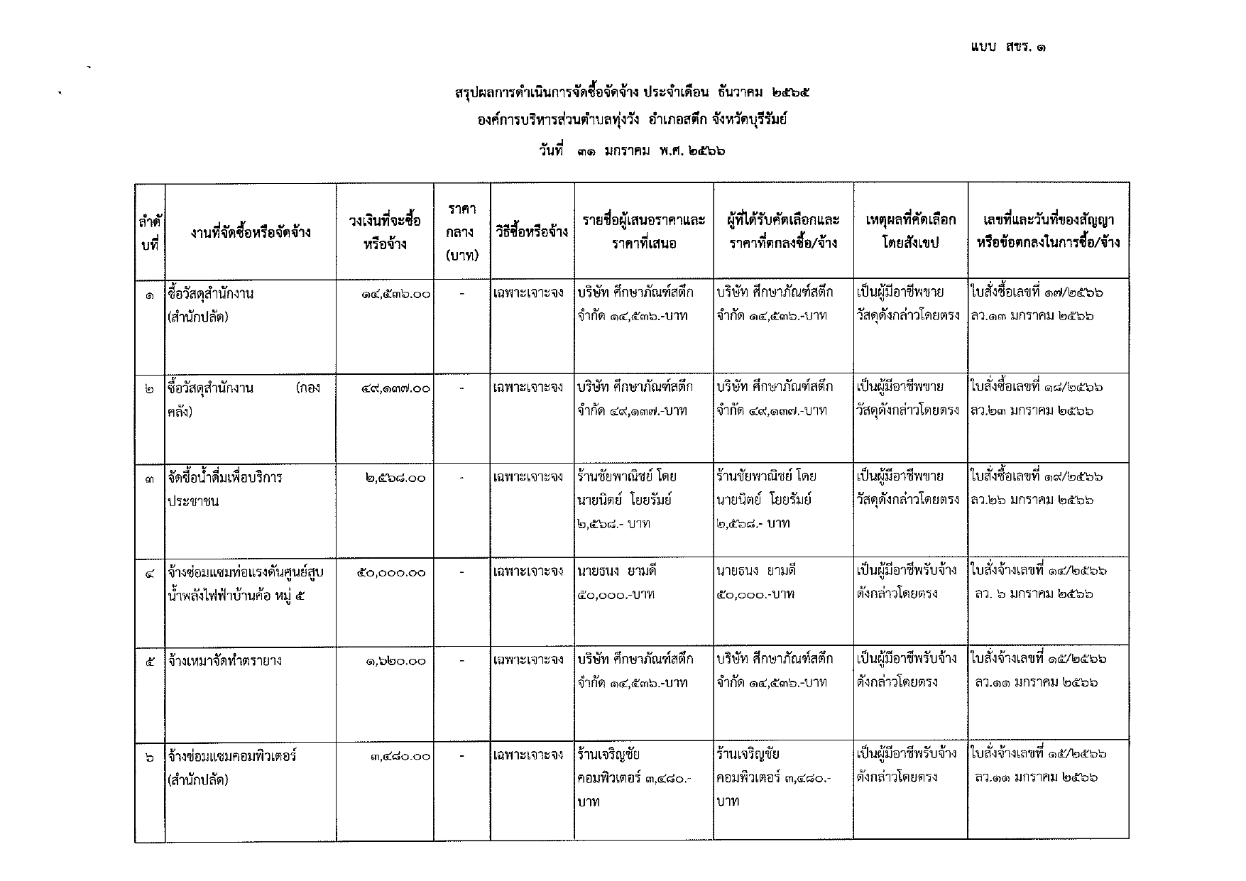 สรุปผลการดำเนินการจัดซื้อจัดจ้างในรอบเดือนธันวาคม พ.ศ. 2565