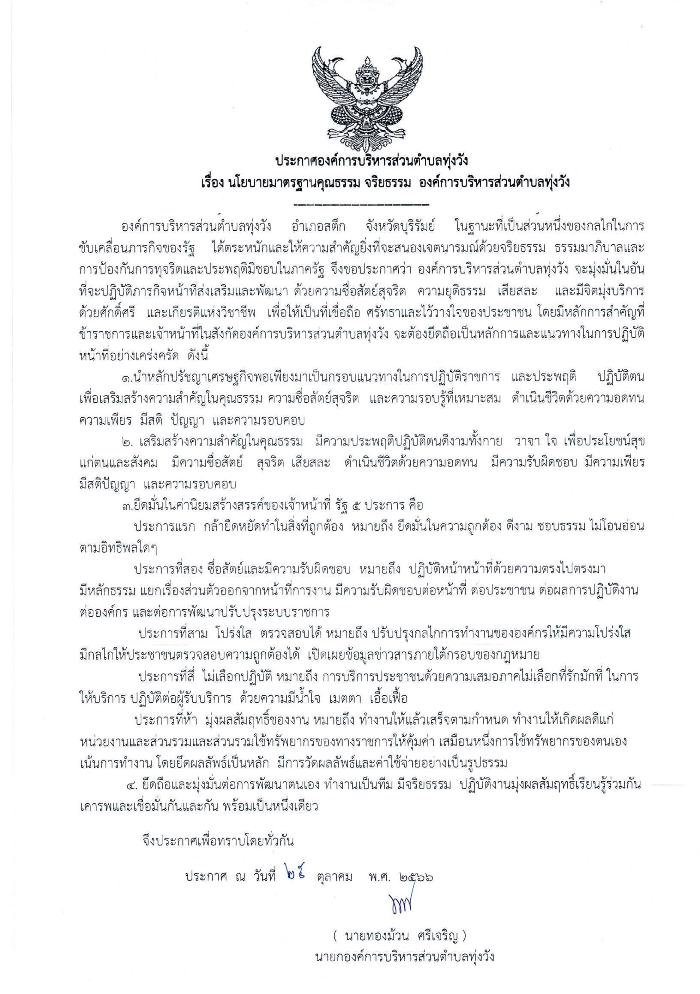 ประกาศ นโยบายมาตรฐานคุณธรรม จริยธรรม