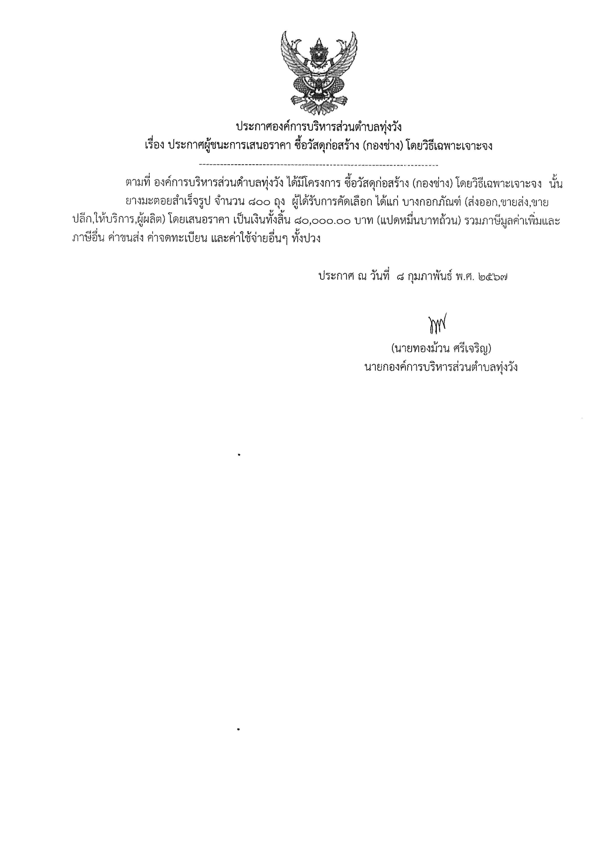 ประกาศผู้ชนะการเสนอราคา ซื้อวัสดุก่อสร้าง (กองช่าง)